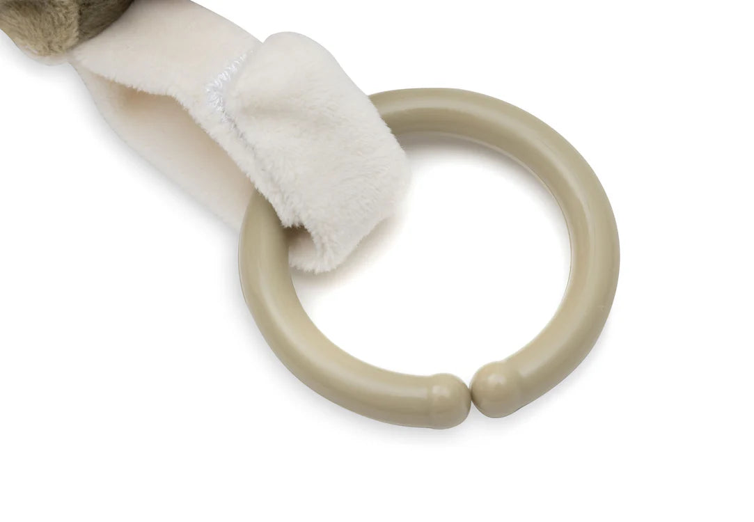 Il contient un cordon avec un anneau en plastique, de sorte à pouvoir l' emmener partout en attachant le cube au parc, au landau ou à la poussette. Parfait pour occuper bébé à la maison ou en sortie.