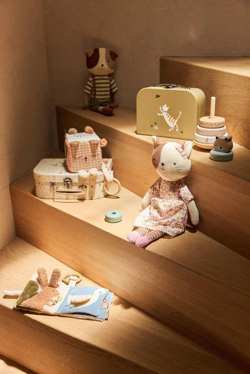Son corps en tricot est tout doux, parfait pour les câlins, et elle tient bien assise pour décorer joliment la chambre de bébé. Un compagnon idéal pour votre petit bout de chou !